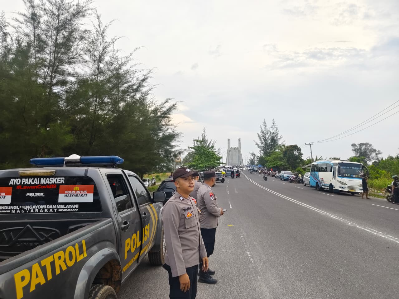 Kegiatan patroli dilaksanakan di sepanjang Jalan Lintas Timur Desa Air Anyir, Kecamatan Merawang, Kabupaten Bangka hingga kawasan Jembatan Emas.