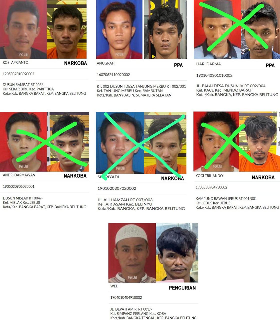 Hingga hari ini, sebanyak lima dari delapan tahanan yang sebelumnya melarikan diri dari rumah tahanan (rutan) Polres Bangka telah berhasil diamankan kembali oleh aparat kepolisian. Sementara itu, tiga tahanan lainnya masih dalam pengejaran tim gabungan.